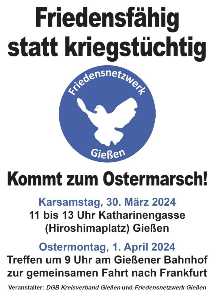 Nachfolgend der Aufruf zum Gießener Ostermarsch: