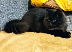 Lord, oder Sir Black, ein British Long Hair, ist ein knappes, halbes Jahr alt.
