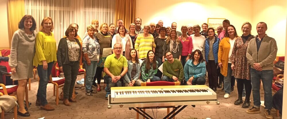 „Musik verbindet…“ so heißt ein bekanntes Sprichwort und so dauerte es gar nicht lange, bis sich die Gleiberger mit dem ebenfalls im gleichen Hotel probenden Chor „Cantico Verde“ aus Rockenberg zusammenfanden, um gemeinsame Chorliteratur anzustimmen.