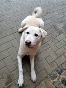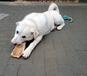 Luna ist am 25.5.2023 geboren. Sie ist ein Mischling, angeblich soll ein Elternteil ein ungarischer Hütehund, ein Kuvasz sein. Sie ist eine wunderbare, junge  Hündin, die schweren Herzens abgegeben wird.