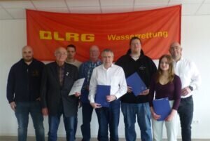 Peter Gömmer (65 Jahre Mitgliedschaft, Ehrenmitglied), Tobias Schmidt (25 Jahre), Ernst Biehl (50 Jahre), Raphael Schlich (25 Jahre), Mariska Neumann (10 Jahre) sowie der Vorsitzende der DLRG Gießen Kai Happel (Verdienstzeichen Bronze).