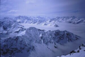 Eine klassische Skitour führt vom Nebelhorn unterhalb der Gipfel des Hindelanger Klettersteigs über das sog. Koblat bis zum Grossen und Kleinen Daumen mit einer Abfahrt in das Hintersteiner Tal. Wir wenden unseren  Blick hier wieder nach Süden und Westen.