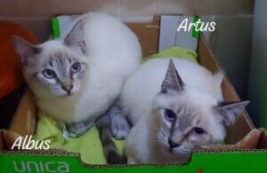 Albus und Bruder Artus sind ca. fünf Monate. Sie haben einen EU Impfausweis, sind gechipt und ihr Blutbild ist in Ordnung.