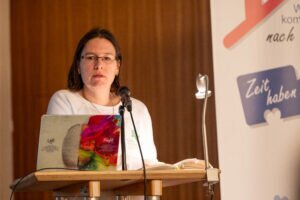 Zur Eröffnung der Mitgliederversammlung des Hospiz-Vereins Gießen e.V. begrüßte der Vorstandsvorsitzende Herr Erwin Kuhn Frau Alia Schilling, die aus ihrem Buch „Leben und Sterben mit einem Hirntumor“ rezitierte. Schritt für Schritt schilderte sie den Weg vom Kennenlernen ihres späteren Ehemannes im Jahre 2001, der knallharten Diagnose „Hirntumor“ in 2011, dem Auf und Ab von sechs Jahren Tumorwachstum, der Auseinandersetzung mit der Krankheit, den Auswirkungen auf die Familie und dann die Todesnachricht.