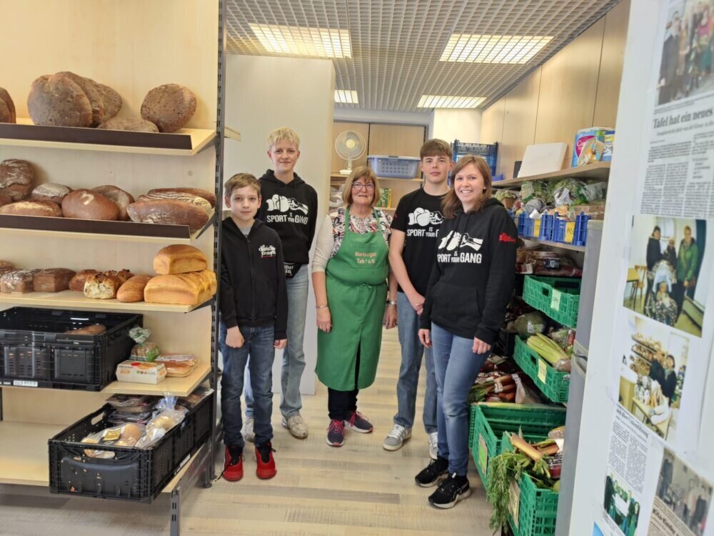 Was es bedeutet ehrenamtlich über den Sport hinaus tätig zu sein, konnten unsere Kids und Jugendlichen am vergangenen Freitag bei der Marburger Tafel in der Ausgabestelle Gladenbach erfahren. Die Leiterin, Anneliese Knierim, war begeistert von unserer innovativen Projektarbeit und freute sich riesig über unsere Unterstützung.