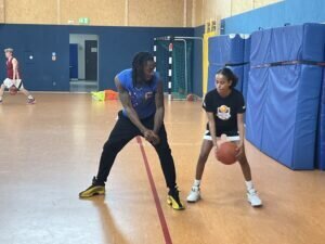 In der Sporthalle der Anne-Frank-Schule in Linden haben die Jugendlichen von 9 bis15.30 Uhr täglich ihre Fertigkeiten und Fähigkeiten im Basketball verbessert, an ihrer Fitness gearbeitet sowie kooperative Spiele durchgeführt.
