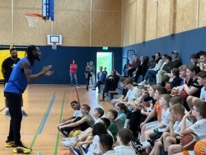 Am letzten Tag des Camps besuchte dann Torrell Martin (Orlando Magic sowie diverse Erstligaclubs in Europa) die Basketballer/-innen in der AFS-Sporthalle.