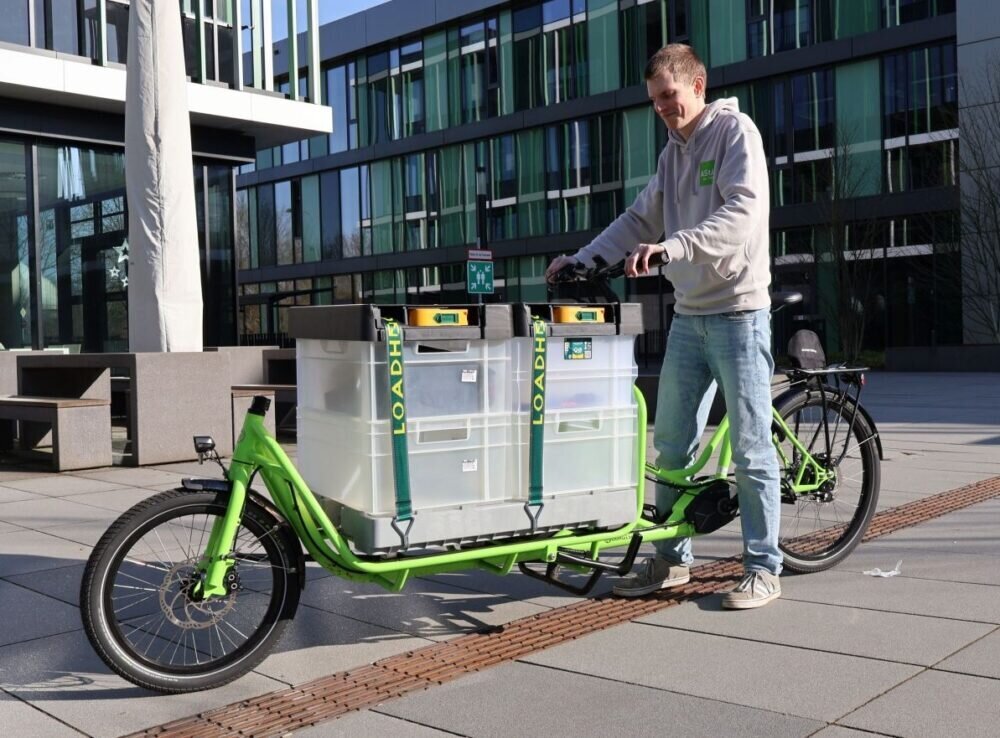 Das neue E-Cargo Bike mit Eurokistenladesystem auf dem Campus in der Wiesenstraße. Foto: Maurice Kontz