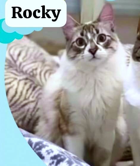 Rocky hat langes Fell und blaue Augen, sein Schwester ein Plüschfell und grüne Augen.