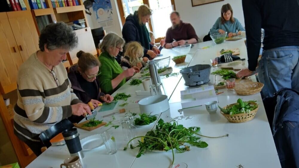 Trotz der Schneeschauer am Morgen trafen sich ca. 20 Personen am Sonntag, den 21.04.24, um gemeinsam Wildkräuter zu sammeln und zuzubereiten.