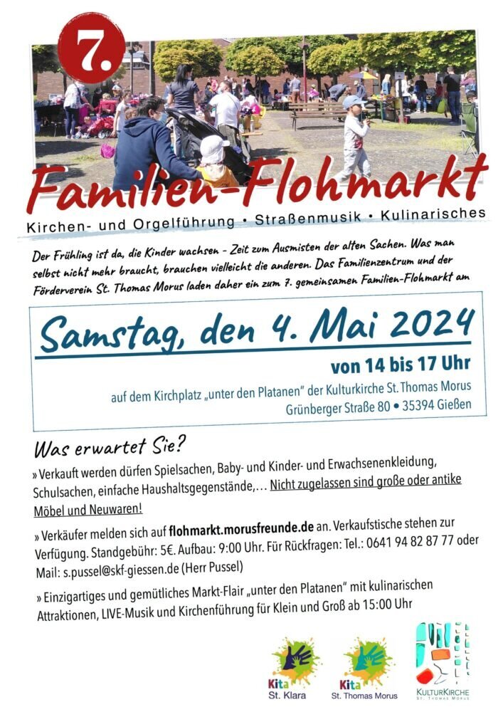 Zur Anmeldung: https://bistummainz.de/pfarrei/giessen-st-thomas-morus/aktuell/termine/veranstaltung/7.-Familien-Flohmarkt/?instancedate=1714824000000