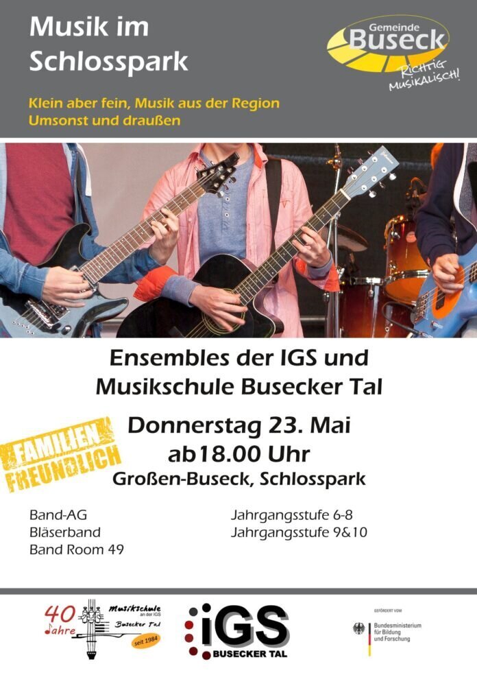 Musik im Schlosspark – Do, 23.05 ab 18:00 Uhr – Ensembles der IGS und der Musikschule Busecker Tal Von Philipp Schmeken-Kant - 12. Mai 2024 102