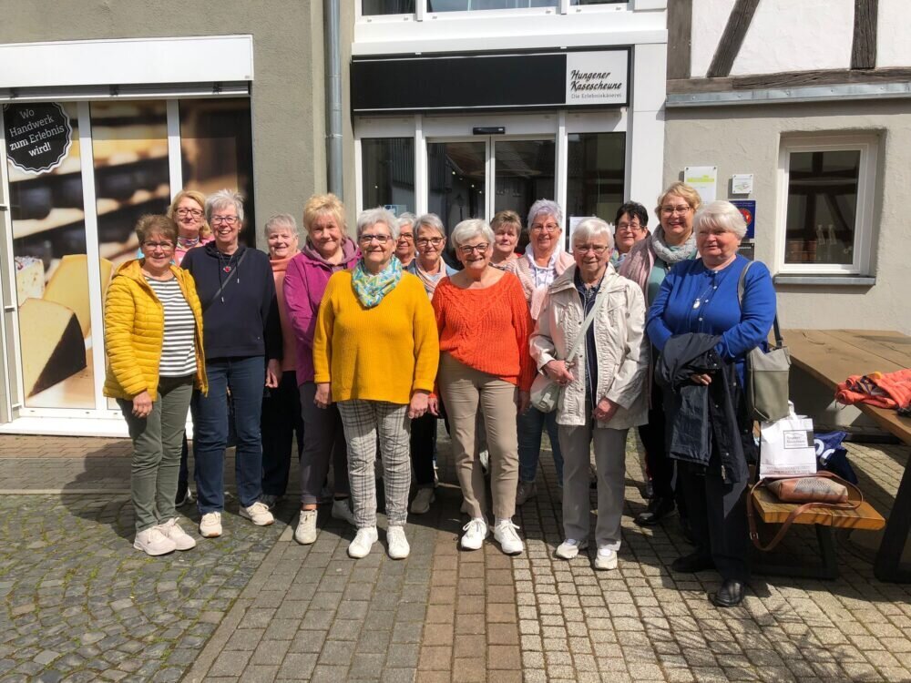 Kürzlich starteten 15 Frauen in Wettenberg-Wißmar zu einem Besuch der Hungener Käsescheune, um bei einem dort gebuchten Käseseminar das 40jährige Bestehen ihres Frauenchores zu feiern. Vor dem leckeren und ansprechend präsentierten Genuss in gemütlicher Umgebung stand eine ausführliche Einführung in die Welt des Käses und der Besonderheiten seiner Herstellung. Auch die Räumlichkeiten mit den Möglichkeiten für Seminare, Weinverkostungen oder Feiern im oberen Stockwerk wurden besichtigt. Leider hatte „der Käser“ bereits seinen wohlverdienten Feierabend angetreten, sodass man den Heimweg nach dem wiederum schmackhaften Mittagessen antreten musste, ohne den Regenten über die Käselaibe persönlich kennengelernt zu haben.
