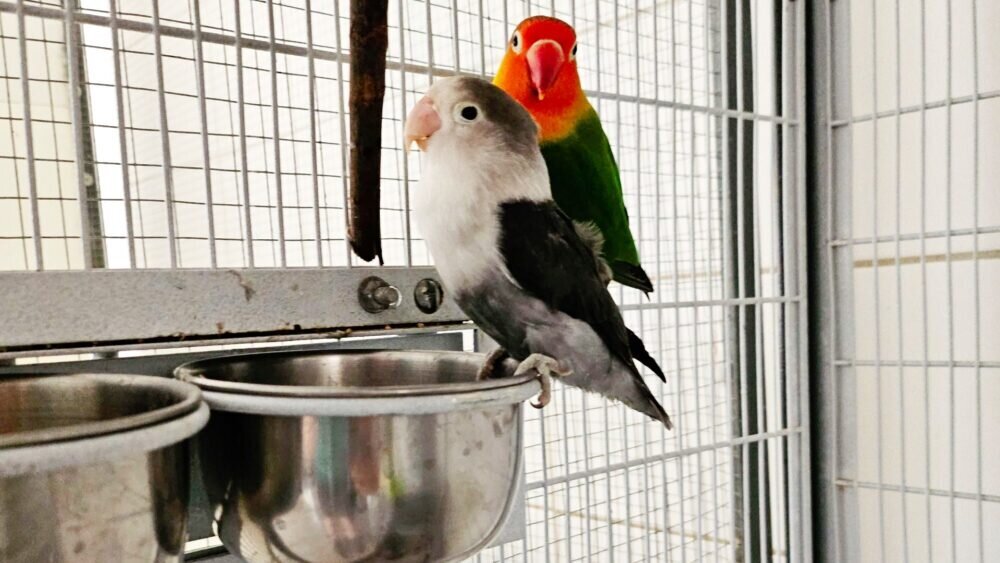 Gothic kam zu uns aus dem Tierheim Marburg als Gefährte für Appledorn, da beide einzeln saßen. Bei den beiden war es Liebe auf den ersten Blick. Die beiden möchten auch gerne wieder zusammen ausziehen, sie schnäbeln und putzen sich gegenseitig und diese enge Beziehung möchten wir nicht auflösen.