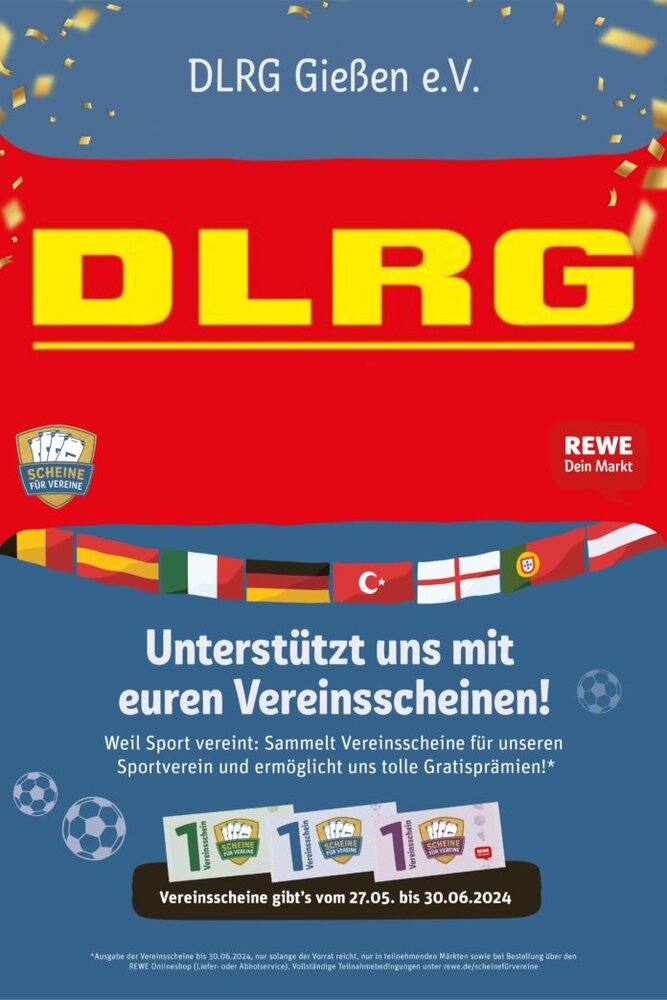Auch in 2024 machen wir von DLRG Kreisgruppe Gießen wieder bei Aktion „Scheine für Vereine” von REWE mit.
