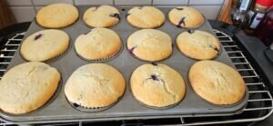 Anmerkung:Ich habe ein Muffinblech, da braucht man die Förmchen nicht so auf dem Backblech auszubalancieren. Trotzdem gebe ich Papierförmchen rein und stelle falls es mehr als 12 Muffins,wie hier, werden welche daneben.