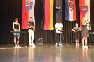 In einer vollbesetzen Gallushalle fand im würdigen Rahmen die Verabschiedung der Haupt- und Realschuljahrgänge 2023/24 der Theo-Koch-Schule Grünberg statt. Zur Eröffnung spielte dabei unter der Leitung von Heike Kratz-Gunkel das schuleigene Blasorchester ein von Paul Murtha bearbeitetes James Bond Medley“ und das von John Williams komponierte Stück „Star Wars“. Schulleiter Jörg Keller erwähnte nach der Begrüßung in seiner Rede für viele Schüler und Lehrkräfte „das Ende einer Abenteuer-Reise“ mit auch durch Corona verursachten sichtbaren Auswirkungen. Für einen erfolgreichen Schuljahrabschluss standen am Ende die Motivation und der Zusammenhalt. Trotz einer oftmals derzeitigen Demontage der Werte von Freiheit und Frieden bestünden für die Schüler gute Zukunftsaussichten. Die in einen neuen Lebensabschnitt startenden Schülerinnen und Schüler sollten bei der Frage nach der eigenen Zukunft nie die zuletzt sterbende Hoffnung verlieren. Die dem Augenblick immer trotzende Hoffnung soll kein Schicksal, sondern die Grundlage für das weitere Leben und für neuen Lebensmut sein. Abschließend dankte Schulleiter Keller allen Lehrkräften, den Erziehungsberechtigten und der Stufenleitung mit Anja Wernecke und Renate Titz für die Unterstützung. In Vertretung von Grünbergs Bürgermeister Marcel Schlosser übermittelte Stadtrat Volker Schlosser an diesem bedeutenden Tag im Leben der Schüler die Glückwünsche für den erfolgreichen Schuljahrgangsabschluss. Dem weiteren Lebensweg zum „viel Erblicken von der Welt“ sollten Entschlossenheit, Neugierde und Mut voranstehen. In den nachfolgenden Grußworten sprachen die Vorsitzende des Schulelternbeirates, Sabine Schönhals-Schmidt, der stellvertretende Vorsitzender der Schülervertretung, Luke Schaaf und die Vorsitzende des Fördervereins, Sabine Lippert Glückwünsche und Anerkennung aus. Sie ermutigten zugleich in ihren jeweiligen Ansprachen, sich nach dem Erreichen des „ersten Meilensteins“ an sich selbst zu glauben, nicht vom Weg abbringen zu lassen, Schwierigkeiten zu überwinden und niemals aufzugeben. Bei der Erwähnung der vielseitigen Unterstützung durch den Förderverein wurde Luis Böhm durch Sabine Lippert für seine wichtige Hilfstätigkeit im Schulsanitätsdienst gedankt. Für die zwei zwischenzeitlichen Auftritte der von Benni Schön geleiteten TKS-Band mit „Don´t Stop Belleving“ und „Ghostbusters“ gab es vom Publikum reichlichen Applaus. Beim Abschiednehmen der 118 aus den sieben einzelnen Klassen kommenden Schüler riefen die jeweiligen Sprecherinnen und Sprecher in teilweise launischen Worten und mit zwei Videobeiträgen die mit Problemen, Herausforderungen, Verantwortung und Spaß behaftete vergangene Schulzeit in Erinnerung. Erfreut über den geschafften Abschluss bedankten sie sich besonders bei ihren Lehrern für die Vorbereitung auf eine neue Chance für ihren weiteren Lebensweg, sowie den Eltern für die großartige Unterstützung. Vor dem Höhepunkt der „Zeugnisüberreichung“ durch die jeweiligen Klassenlehrer konnten Schulleiter Jörg Keller und die Stufenleiterin 9/10, Anja Warnecke noch die Jahrgangsbesten Simon Walden (Hauptschule) und Karlos Justin (Realschule) auszeichnen. Die Zeugnisse für die Hauptschulklasse 9 g händigten Tobias Köhler und Miriam Barte aus. Die Schüler der Klasse 9 PuSch 1 erhielten diese durch Anne Weyers und Lars Krätschmer. Nicole Goldstein, Corinna Gans und Matthias Biesgen überreichten die Zeugnisse an die Schüler der Klasse 9 PuSch 2. Die abgehenden Realschülerinnen und -Schüler der Klassen 10c, 10d, 10e und 10f erhielten ihre Zeugnisse aus den Händen ihrer Klassenlehrer bzw. -lehrerin Ronald Schmidt, Harald Pausch, Isabell Meinhart und Thorben Wagner.