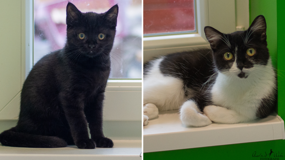 Viktoria und Sternchen haben sich nicht gesucht, aber doch gefunden: Die beiden kamen separat zu uns ins Tierheim und waren zu diesem Zeitpunkt die einzigen Kitten bzw. Jungkatzen, die wir hatten. Viktoria (schwarz-weiß) wurde bei uns abgegeben, da sich ihre Besitzer nicht mehr um sie kümmern konnten, während das kleine Sternchen (schwarz) als Fundkatze bei uns ankam und keinen Besitzer zu haben scheint.