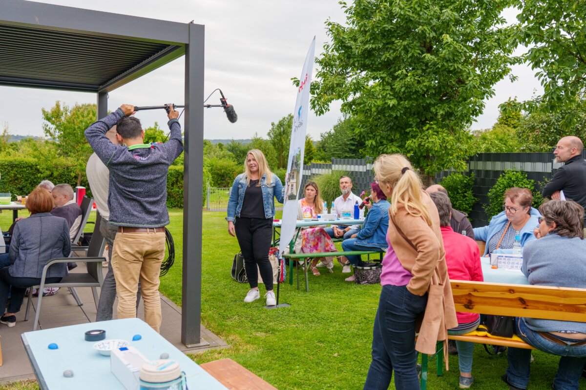 Fronhausen, 5. Juli 2024 – Das Team von E-Production aus Frankfurt führte am vergangenen Freitag Filmaufnahmen mit 20 Mitgliedern der Hirntumor Selbsthilfegruppe Mittelhessen und deren Angehörigen durch. Ziel ist die Erstellung eines Informationsvideos für das Projekt „Brain Connect – Empowering Lives, Building Support“. Zu den Aufnahmen gehörten Interviews, ein Informationsbeitrag von Frau Weber-Wieland zur Arbeit im Tageshospiz „Haus Emmaus“ in Wetzlar sowie Impressionen vom jährlichen Sommerfest der Gruppe. Alia Schilling vom Leitungsteam bedankt sich herzlich bei der AOK – Die Gesundheitskasse in Hessen, die die Filmproduktion ermöglicht hat.