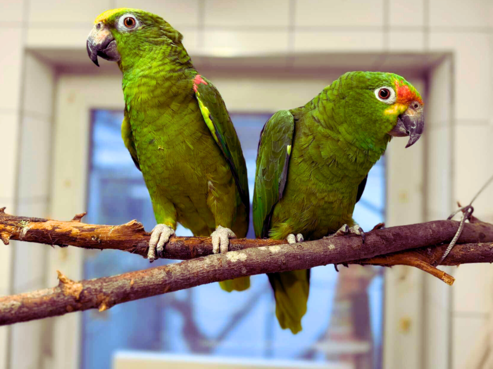 Die beiden Amazonen Carusa und Jacko wurden von uns aus einem anderen Tierheim übernommen. Nach einer zweimonatigen ,erfolgreichen Behandlung gegen Aspergillose, sind sie nun vermittlungsbereit. Eine Nachkontrolle per Röntgen sollte nach einem Jahr erfolgen. Bei den beiden weiblichen Vögel handelt es sich um zwei unterschiedliche Amazonenarten. Während es sich bei Jacko um eine Gelbwangenamazone handelt, gehört Carusa zu den Gelbstirnamazonen. Da sie sehr eng verbunden zusammen leben, viel kuscheln und miteinander schnäbeln, werden sie nur gemeinsam vermittelt. Die Tiere sind zahm und fressen aus der Hand.
