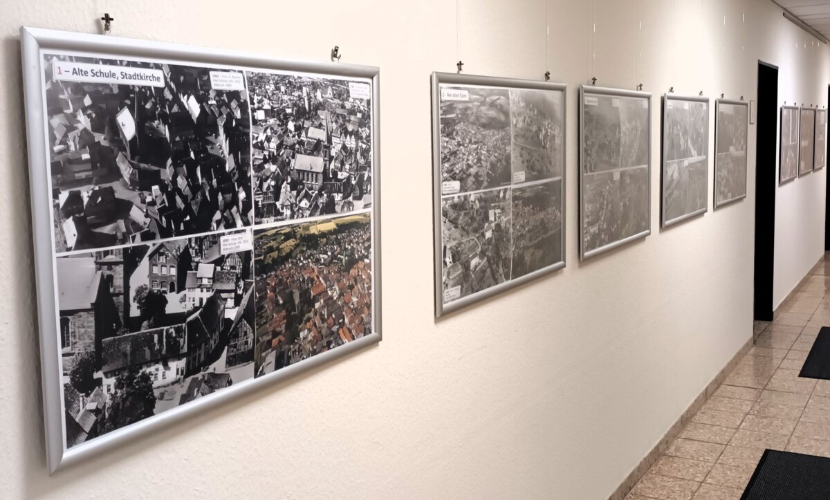 Unsere aktuelle dritte Ausstellung im langen Flur zeigt „Grünberg von oben“. Die Heimatkundler Harald Sellner und Ekart Rittmannsperger sichteten in verschiedenen Archiven und bei Privatpersonen zahlreiche Aufnahmen aus den 60iger Jahren. Diese 20 großen Bildtafeln werden mit aktuellen Drohnen-Aufnahmen der Firma Foto-Halbich verglichen.