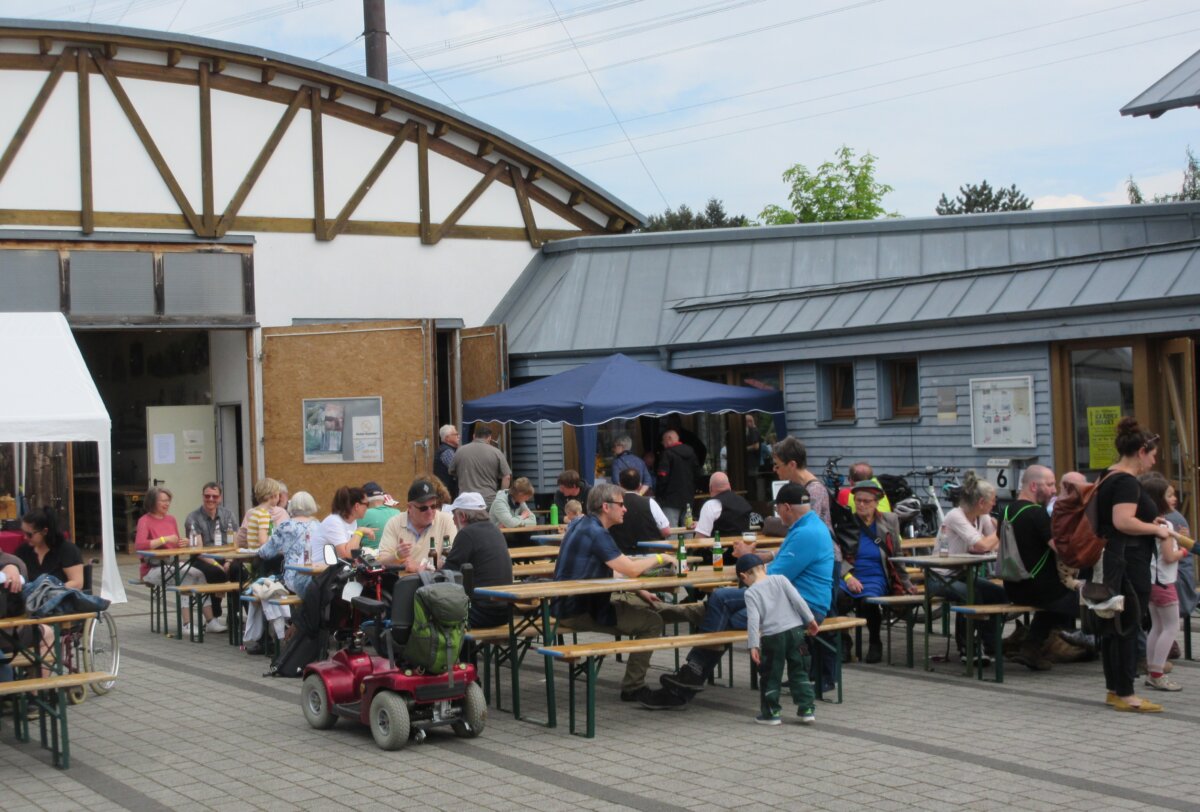 Zahlreiche ehrenamtliche Museumsmitarbeiter:innen kümmern sich auf dem Hof oder im Biergarten hinter dem Gebäude um das leibliche Wohl der Gäste: Kaltgetränke, Kaffee, frische Waffeln, Kuchen, Leckereien vom Grill und Dämpfkartoffeln mit Quark zu familienfreundlichen Preisen stehen auf der Karte. Das Team vom Holz- u. Technikmuseum wünscht allen Gästen des Dampf- und Gattertages einen interessanten und angenehmen Aufenthalt im Holzerlebnishaus.