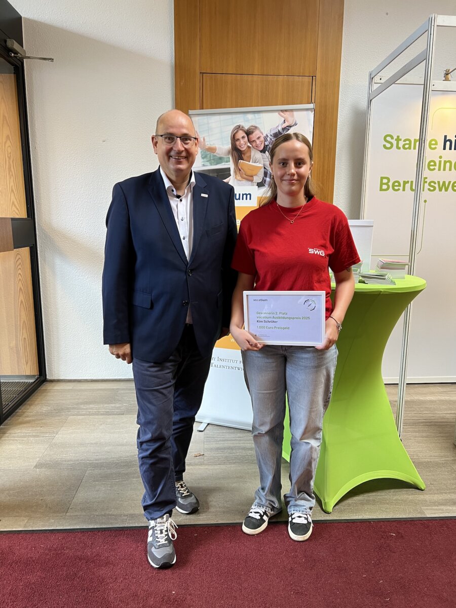 Vocatium ist eine Veranstaltung des IfT Instituts für Talententwicklung und macht in zahlreichen deutschen Städten Station. „Für uns als großer Ausbildungsbetrieb in der Region ist es selbstverständlich, an einer solchen Messe teilzunehmen. Nicht nur, weil wir Nachwuchskräfte brauchen, sondern vor allem, weil wir uns unserer sozialen Verantwortung sehr bewusst sind. Preisträgerin Kim-Lea Schroeter und die zahlreichen anderen Auszubildenden, die die SWG auf dem Messestand vertreten, sind wichtige Botschafterinnen und Botschafter für das Unternehmen. Ich bin sicher, dass sie mit ihrem Engagement viele junge Leute für die sinnstiftende Arbeit bei den SWG begeistern können“, fasst Andreas Hergaß zusammen.