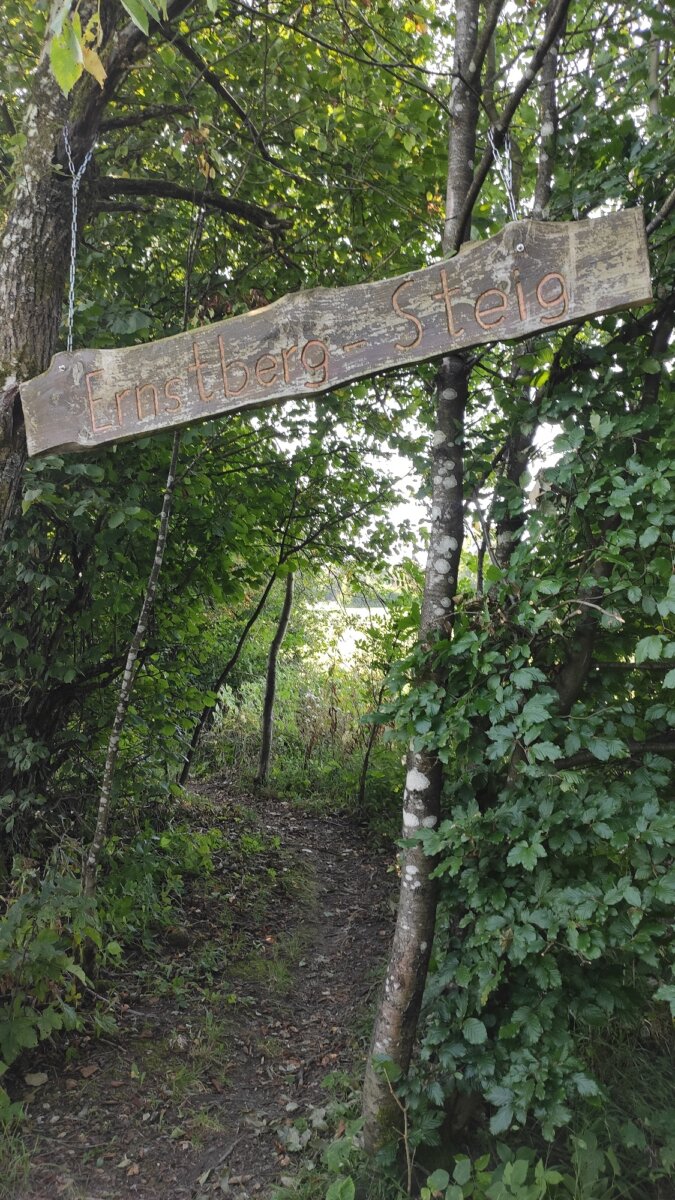 Nach dem Verlassen des Waldes ist der erste Aussichtspunkt erreicht. Ab hier führt der Weg durch eine abwechslungsreiche Wiesen- und Heckenlandschaft wieder bergab. Danach ging es auf dem Ernstberg-Steig, einem kleinen idyllischen Pfad durch ein Wäldchen auf den Ernstberg. Ab hier führte der Weg wieder bergab in das Tal des Hundsbaches. Nach der Querung des Baches steigt der Weg erneut an und führt durch noch blühende Wiesen bis er schließlich auf den Vulkanradweg trifft.