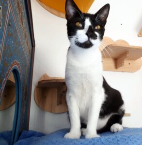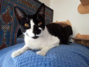 Zwar läßt sie sich von Artgenossen nicht “die Butter vom Brot nehmen”, aber sie ist umgänglich mit den kätzischen Mitbewohnern.