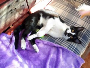Nancy ist ca. Mitte2023 geboren. Sie tauchte eines Tages in einem Park auf und versuchte laut maunzend , auf sich aufmerksam zu machen. Sie lief den Menschen hinterher und zeigte deutlich, dass sie sich hier nicht auskannte.