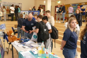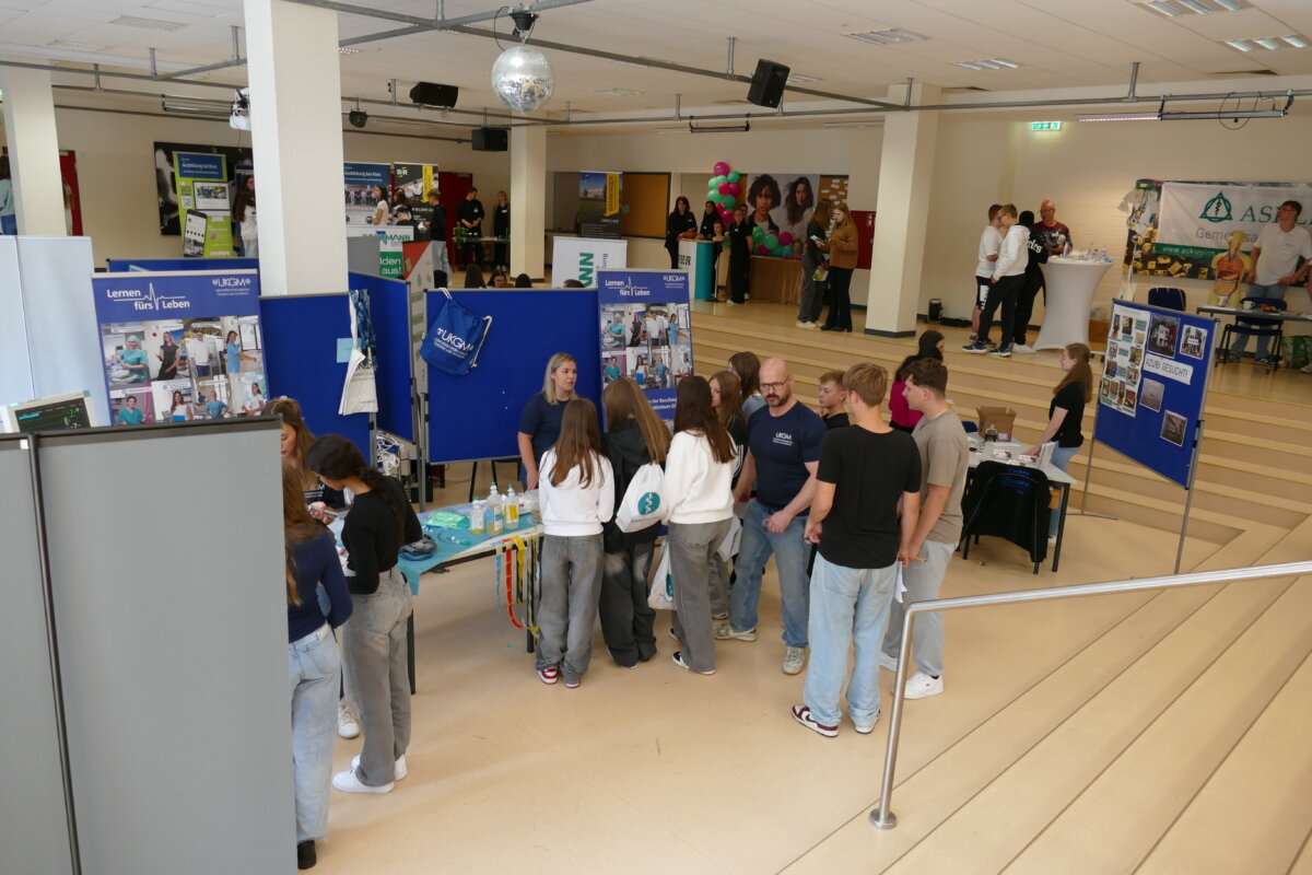 Am 19.09.24 startete die 15. Ausbildungsoffensive der Gesamtschule Busecker Tal (IGS) mit der jährlichen Kick-Off Auftaktveranstaltung. Mehr als 20 Einrichtungen und Betriebe aus der Region haben sich mit vielen interaktiven Informationsständen den rund 160 Schülerinnen und Schülern des Jahrgangs 8 aus einer großen Berufsmesse im Hause der Schule vorgestellt.
