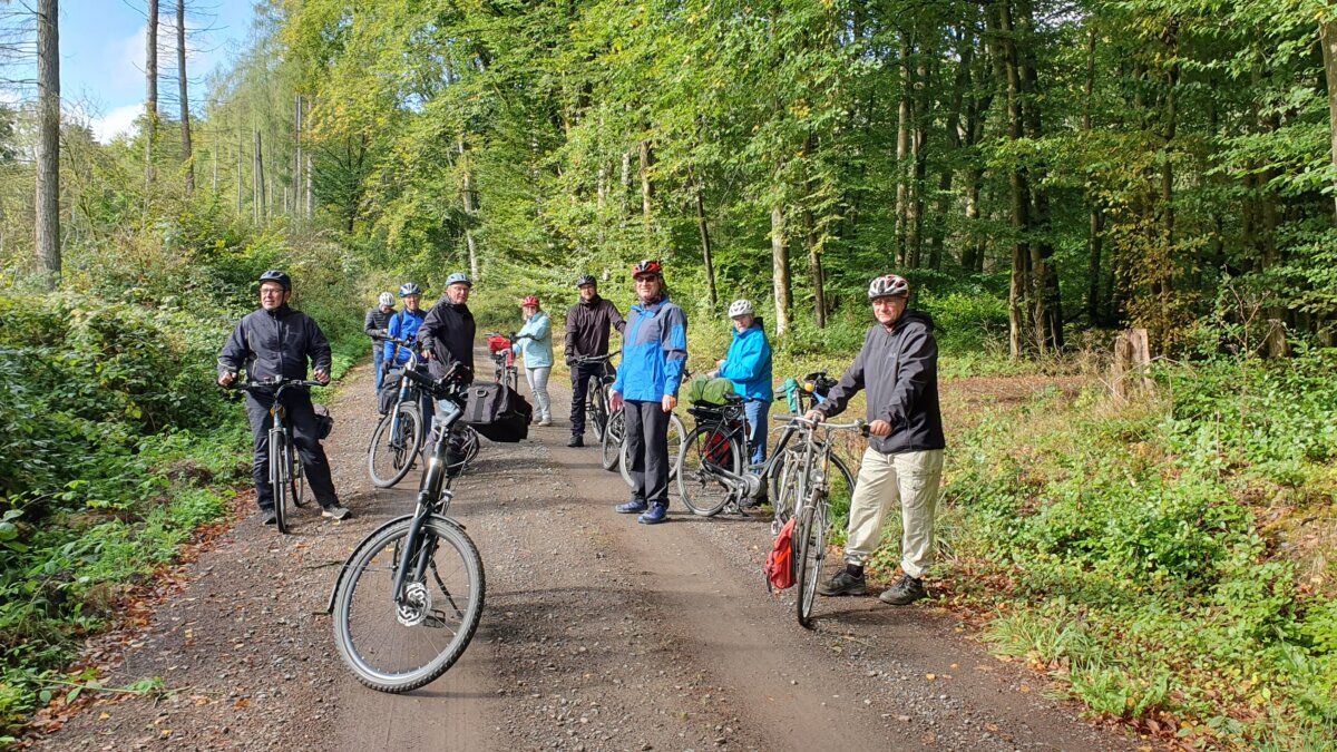 Bei strahlendem Sonnenschein und kühlen Temperaturen begrüßte Harald Fritzges die Teilnehmer der 26 km langen Radtour und gab eine Einführung in das Thema.