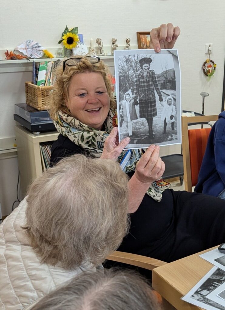 “Welche Modeerscheinungen haben Sie mitgemacht?“, wollte Eva Becker, Leiterin des Sozialtherapeutischen Dienstes im Johannesstift, von den Bewohnerinnen und Bewohnern wissen. Von Haaren, die aussahen „wie ein Vogelnest“, „knallengen“ Miniröcken mit Falten und von Stöckelschuhen, die der Opa spendierte, weil die Eltern dagegen waren, berichteten die Teilnehmenden. Und wie reagierte das Umfeld auf die Trends und die neue feministische Bewegung? „Man hat es gelernt, selbstbewusst zu sein und über komische Sprüche hinweggehört.“