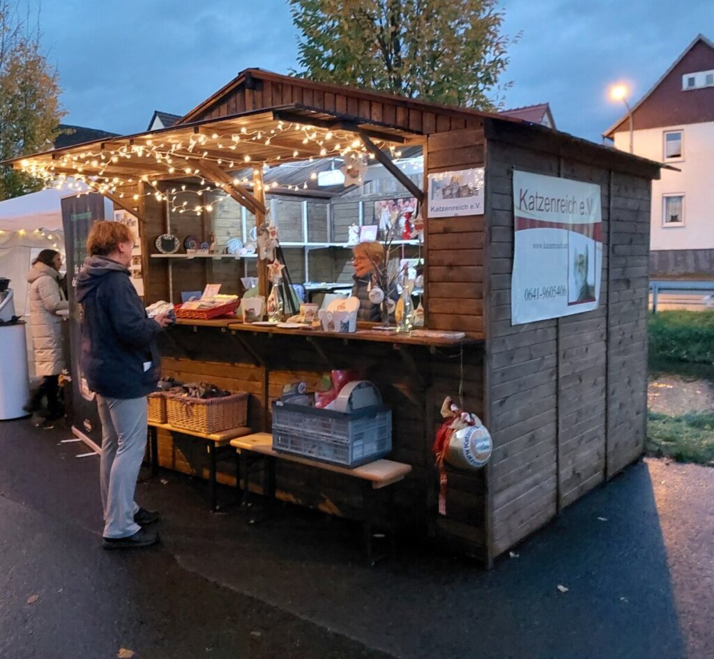 Wie jedes Jahr findet am ersten Sonntag im November der traditionelle Martinsmarkt in Heuchelhelheim statt. Wir freuen uns, dass auch unser Verein Katzenreich e.V. mit einem Info- und Verkaufsstand am 3.11. wieder dabei ist. Interessierte können sich sowohl über die Arbeit des Katzenschutzvereins, als auch über die aktuell zu vermittelnden Katzen und alle weiteren Aktivitäten des Vereins informieren. Auch Katzenbesitzer und solche, die es werden wollen, berät das Katzenreichteam bei allen Fragen rund um die Katze ausführlich und kompetent. Zum Verkauf angeboten werden neben den beliebten selbstgestrickten Socken, auch viele kätzische Dekoartikel, Handarbeiten, Katzenbettchen, und zum ersten Mal auch ausgefallener Modeschmuck, hergestellt von einer befreundeten Goldschmiedin, jedes Stück ein Unikat. Alles ideale Weihnachtsgeschenke für Katzenfreunde. Sie finden uns auf dem gewohnten Platz in der Bachstrasse (gegenüber Haus Nr. 51) am Ortausgang Richtung Dutenhofen. Wir freuen uns auf Ihren Besuch!