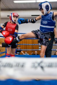 Den Anfang machte die jüngste Kämpferin, Zoé. Mit acht Jahren betrat sie voller Vorfreude den Ring und präsentierte einen Teil des traditionellen Wai Kru. Der Kampf begann, und Zoé überraschte alle mit ihrer technischen Raffinesse im Muay Thai. Besonders beeindruckend war ihr geschicktes Clinchen und ihre schnellen Kniestöße, die sie souverän einsetzte. Am Ende erkämpfte sie sich ein verdientes Unentschieden und konnte mit einer herausragenden Leistung überzeugen.