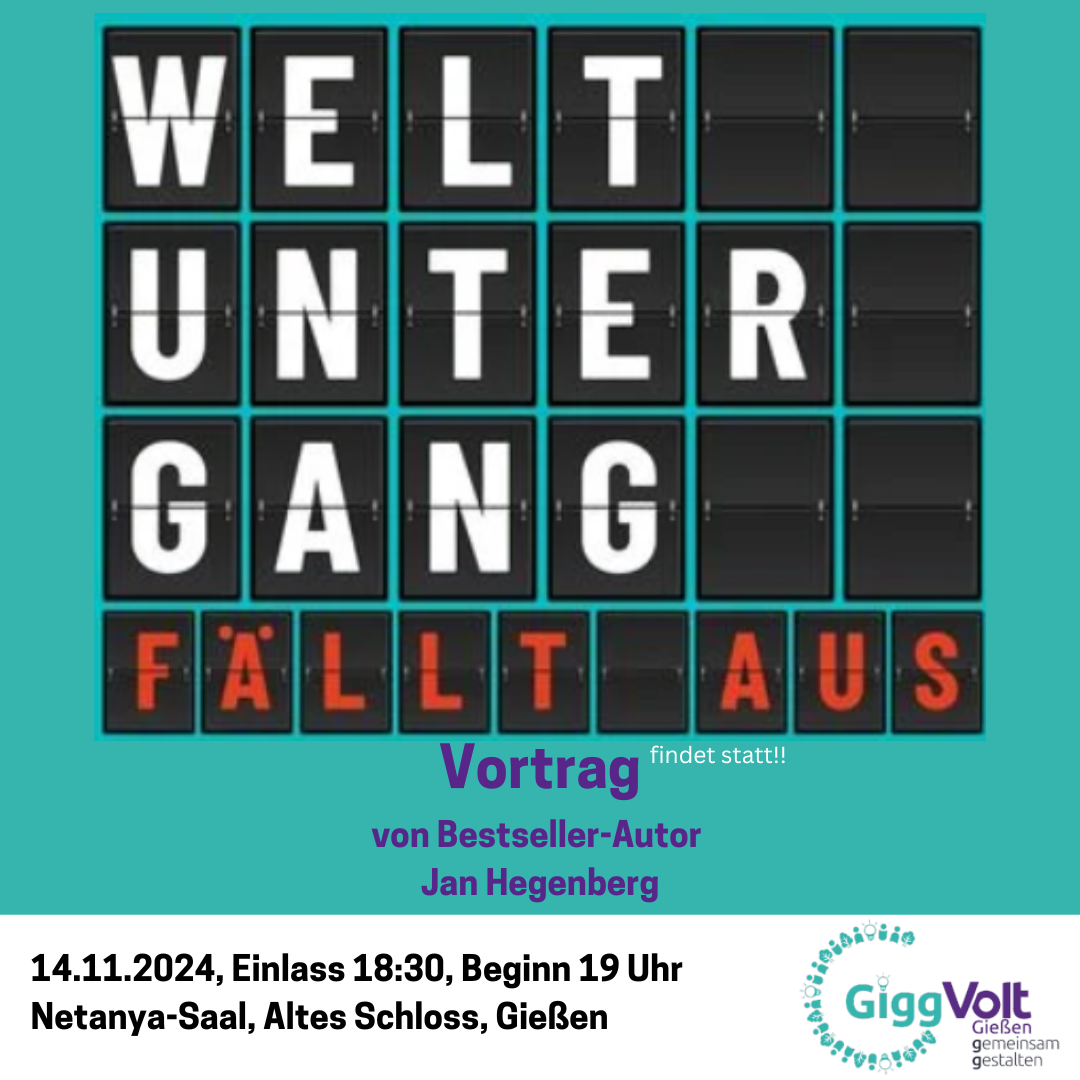 Gigg+Volt lädt zum Vortrag mit anschließender Fragerunde von Bestseller-Autor Jan Hegenberg am 14.11.2024 ab 19 Uhr im Netanya-Saal des Alten Schlosses.