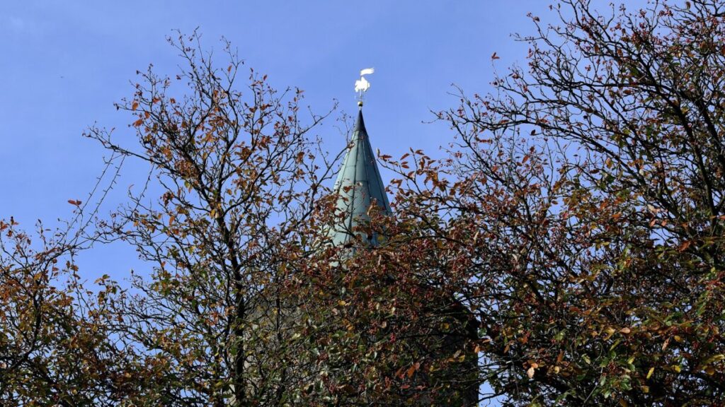 Stadtkirchenturm von der Lautere Straße gesehenEine Augenweide alljährlich – zugrankter Eingangsbereich, Neustadt hoch“Bunte Ecke” – Neustadt/RabegasseDachspitze des histor. Diebsturms “im Herbstkleid”Laub `on masse` – >Alten Posthof<
