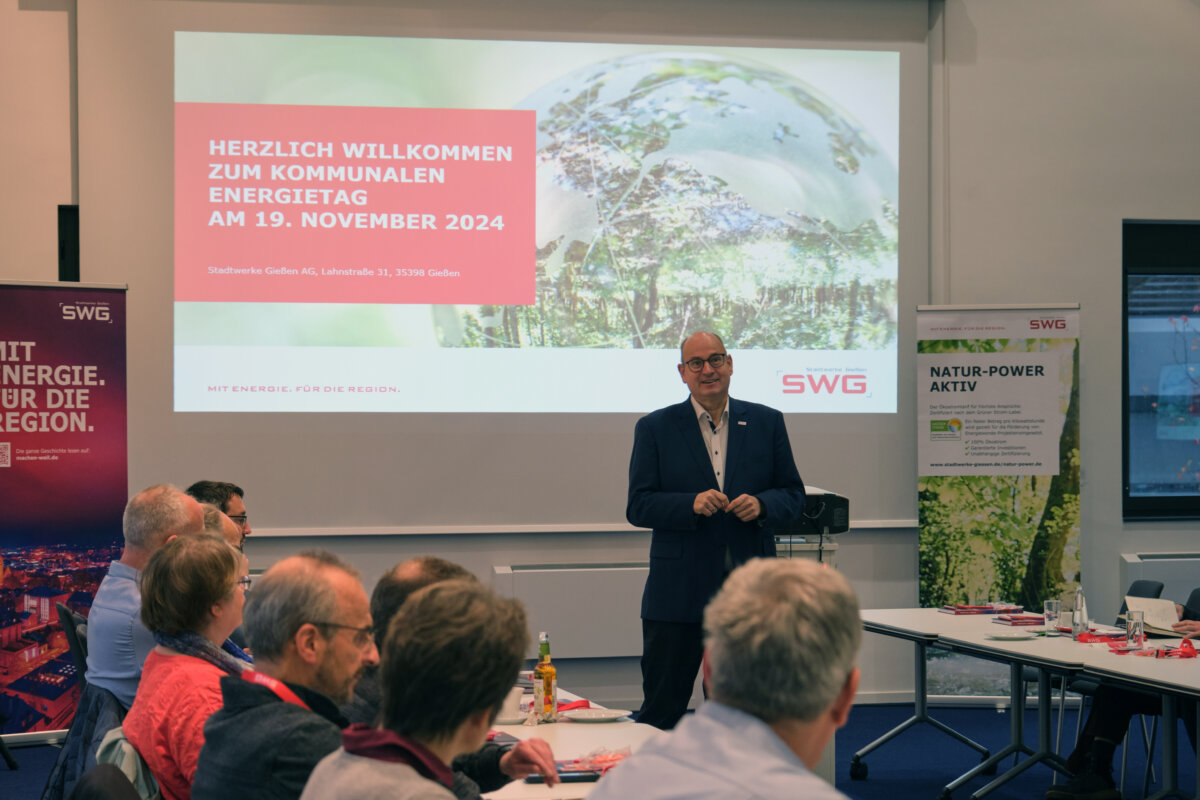 Kommunale Wärmeplanung, ein schlüssiges Energiemanagement für die eigenen Liegenschaften, eine effiziente Straßenbeleuchtung – der Themenkomplex Energie stellt Städte und Gemeinden zunehmend vor Herausforderungen. Angesichts der zahlreichen Aufgaben, mit denen sich die Verantwortlichen in den Rathäusern auseinandersetzen müssen, ist es nicht weiter verwunderlich, dass wieder 35 Vertreterinnen und Vertreter aus 17 kommunalen Verwaltungen und des Landkreises die Gelegenheit nutzten, um sich bei den Stadtwerken Gießen (SWG) zu aktuellen Entwicklungen zu informieren. „Mit den Kommunalen Energietagen möchten wir den Verantwortlichen in den Rathäusern zeigen, mit welchen Maßnahmen Kommunen die Energiewende vor Ort vorantreiben und dabei mittelfristig Geld sparen können“, erklärt Andreas Fuchs, Leiter Vertrieb bei den SWG, die Idee hinter der regelmäßigen Informationsveranstaltung.