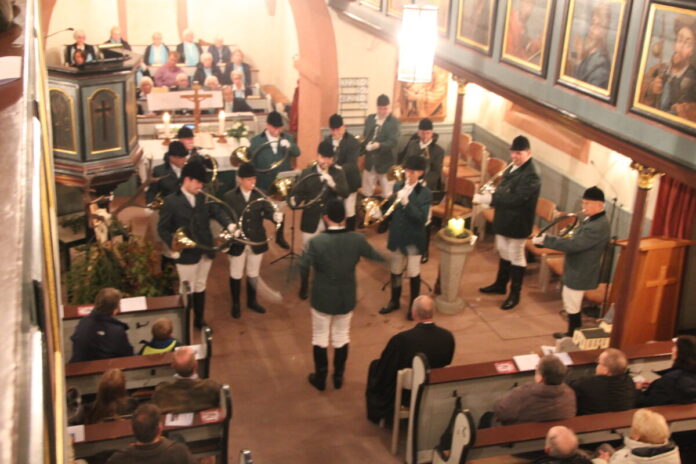 Das Parforcehorncorps unter der Leitung von Peter Diehl war Mitgestalter der Hubertusmesse der Jägervereinigung Oberhessen