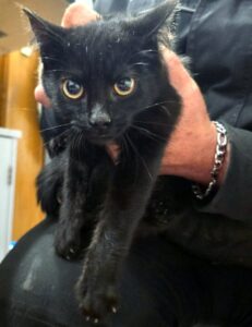 Eine Nachfrage bei Nachbarn ergab, dass noch niemand die Kítten gesehen hatte. Das Tigerchen war bei Aufinden ca. fünf Wochen alt, der schwarze Kater ca. acht Wochen.