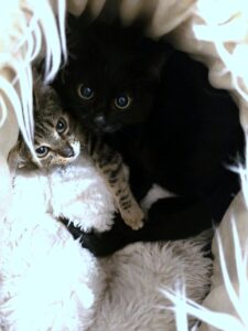 Sie sollen in absehbarer Zeit adoptiert werden. Wir suchen Menschen, die Geduld und Ruhe haben, weiter mit den zwei Kitten zu arbeiten. Es wird einige Zeit in Anspruch nehmen, aber wir sind zuversichtlich, dass sie zahm und umgänglich werden.