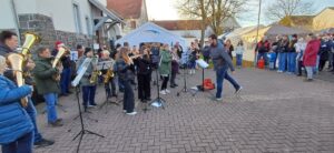 Im musikalischen Teil folgte der Musikzug Holzheim. Unter Leitung des agilen Dirigenten Bernhard Blei spielten die Musiker einen „mitreißenden weihnachtlichen Sound“ und bekamen viel Applaus.