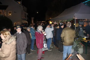 Eine gelungene Premiere gab es am vergangenen Freitag in dem Grünberger Stadtteil Weickartshain mit dem 1. Adventszauber. Unter der Federführung des Kulturrings Weickartshain mit den Organisatorinnen Corinna Rahn und Andrea Fuchs, sowie der Beteiligung vieler Mitglieder der örtlichen Vereine erlebten die mehrere hundert Besucher den besonderen Flair beim Rahmenprogramm und beim Weihnachtsmarktgeschehen in und rund um die Kirche. Nach der offiziellen Eröffnung begeisterte anschließend in dem vollbesetzten Gotteshaus der örtliche Männergesangverein unter der Leitung von Andreas Schneider und der Mandolinenclub „Gut Klang“ mit der Leiterin Christina Scharmann das Publikum. Vorgetragen wurden von dem Männerchor die Lieder „Wir wünschen euch frohe Weihnacht“, Stern auf den ich schaue“ und „Im Stall zu Bethlehem“. Nach dem Auftritt des Mandolinenorchesters mit den Liedern „The Rose“, „Drei Nüsse für Aschenbrödel“ und „Kleine Hirtenmusik“ erklangen dann beim gemeinsamen Auftritt der Sänger und der Musiker die Lieder „All die Sterne“, „Leise rieselt der Schnee“ und der vom Publikum mitgesungene Kanon „Dona nobis pacem“. Zum Abschluss des Konzertes, dessen Spendenerlös in Höhe von 250,00 Euro an den Kindergarten in Lardenbach übergeben wird, erfreuten der Chorgesang und die begleitenden Saiteninstrumente mit „Winterwunderland“ und „Hört der Engel helle Lieder“ die mit dem verdienten Beifall nicht geizenden Zuhörer. Ein weiterer musikalischer Höhepunkt gab es dann noch unter freiem Himmel mit den unter der Leitung von Jens Anders stehenden Seenbachtalbläsern. Sie stimmten ebenfalls mit ihren Darbietungen auf das bevorstehende Weihnachtsfest ein. Nach der musikalischen Einstimmung nutzten viele dann das dicht gedrängte Markttreiben vor der angestrahlten Kirche und den festlich beleuchteten Nachbargebäuden. Die zumeist von einzelnen örtlichen Vereinen angebotenen zahlreichen der Jahreszeit angepassten Speisen und Getränken dienten zur Stärkung und fanden guten Absatz. Neben dem kulinarischen Angebot wurden an den geschmückten Ständen und Buden auch zahlreiche Bastel- und Handarbeiten präsentiert. Zu den Marktbeschickern zählten neben einzelnen Dorfbewohnern der Kulturring, der Fußballclub, der Obst- und Gartenbauverein, der Angelsportverein, die Landfrauen, der Schützenverein und der Kindergottesdienst. Für viele der Besucher war der 1. Adventszauber auch ein Ort der Begegnung, bei dem es auch immer wieder zum Gedankenaustausch mit viel Gesprächsstoff kam.
