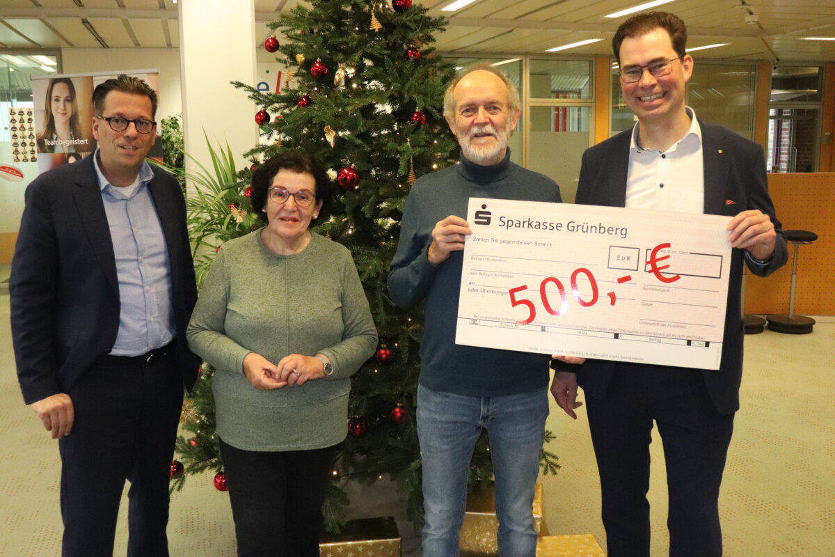 Einen herzlichen Dank sprachen der Vorsitzender des Seniorenbeirates der Stadt Grünberg, Dr. Werner Faust und dessen Stellvertreterin Brigitte de Voss, der Sparkasse Grünberg für eine Spende zur Durchführung der alljährlichen Seniorenweihnachtsfeier der Großgemeinde Grünberg aus. Das heimische Geldinstitut spendete 500 Euro zur Finanzierung der vom Beirat und der Stadtverwaltung Grünberg am 1. Dezember 2024 durchgeführten Veranstaltung. Der für die Programmgestaltung und für die Verköstigung bestimmte Betrag erfolgte durch den Vorstandsvorsitzenden Andreas Klunz und das Vorstandsmitglied Carsten Steege durch eine obligatorischen Scheckübergabe. Der Dank des Seniorenbeirates gilt zudem Adrian Horst von der Edeka-Markthalle, Tim Schäfer vom Rewe-Markt in Grünberg, dem Schloß-Café Lukasch, dem Grünberger Märchencafé und der Bäckerei Müller, die neben Geld-, Nikolaus- und Kuchenspenden auch für eine reichhaltige Kaffeetafel sorgten.
