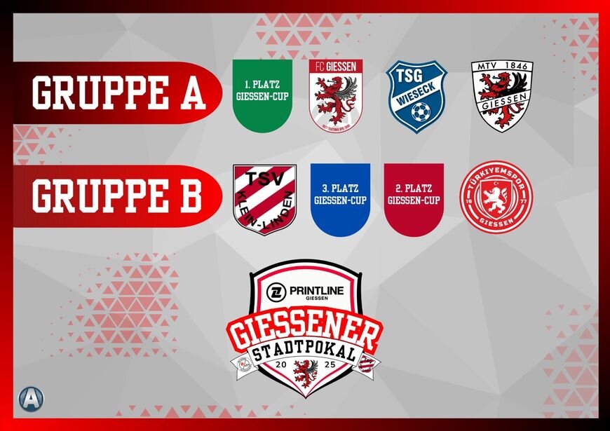 Beim Printline Stadtpokal hat es ebenfalls die Gruppe A in sich. Hier spielen mit dem Titelverteidiger FC Gießen, dem 8maligen Stadtpokalsieger TSG Wieseck und dem Gruppenligisten und 1maligen Sieger MTV Gießen richtige Schwergewichte gegeneinander, Komplettiert wird die Gruppe vom Printline Gießen Cup Sieger vom Vortag.