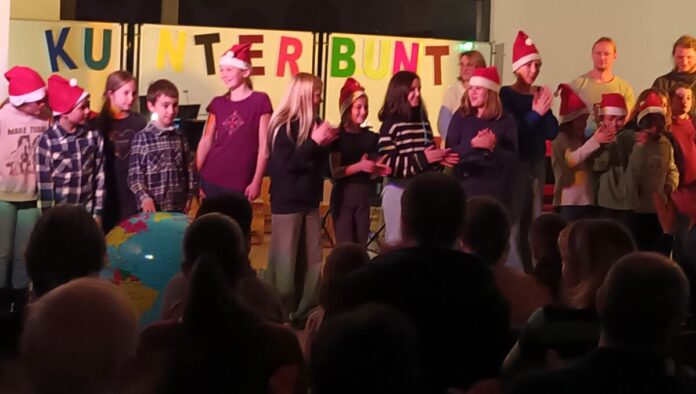 Schülerinnen und Schüler der Grundschule wählen sich ein Wunschinstrument mit dem sie in Kleingruppen von Fachkräften der Musikschule ein Jahr lang unterrichtet werden. Nach wenigen Monaten startet dann eine zusätzliche wöchentliche gemeinsame Orchesterprobe in der sich die verschiedenen Instrumentalgruppen zum gemeinsamen Musizieren im „Orchester Kunterbunt“ treffen. Bei der Abschlussaufführung konnten Eltern und Gäste hören, was in diesem Jahr erarbeitet wurde. Die Orchesterproben wurden von den Fachlehrern Constantin Koch uns Maryana Ligato geleitet. Instrumentalunterricht wurde von Maryana Ligato (Violine), Oliver Mühlig (Gitarre), Sven Tost (Schlagwerk) und Constantin Koch (Keyboard) erteilt. Koch gestaltete auch die Abschlussaufführung unter dem Motto Weltreise mit vielen bunten Einlagen wie Cowboys und einem Drachen.