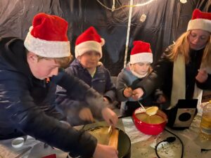 Die Care-Pakete enthielten wärmende Mützen, Schals, Handschuhe sowie viele nützliche Kleinigkeiten für den Alltag unterwegs. Neben den Care-Paketen wurden auch frische Waffeln gebacken und verteilt, was bei den Obdachlosen für große Freude sorgte. “Es war wirklich herzerwärmend zu sehen, wie engagiert die Kinder sind.”, so ein Besucher an diesem Abend.