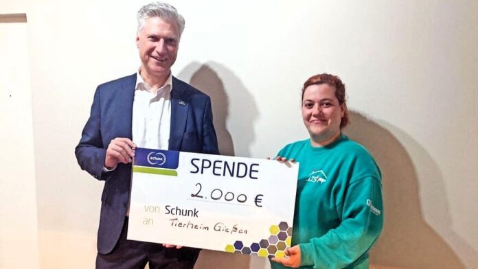 Die Firma Schunk hat dem Tierheim Gießen eine großzügige Spende in Höhe von 2.000 Euro zukommen lassen. Diese Spende wurde von der Tierheimleitung, Frau Hannah Wern, mit großer Freude und Dankbarkeit entgegengenommen.