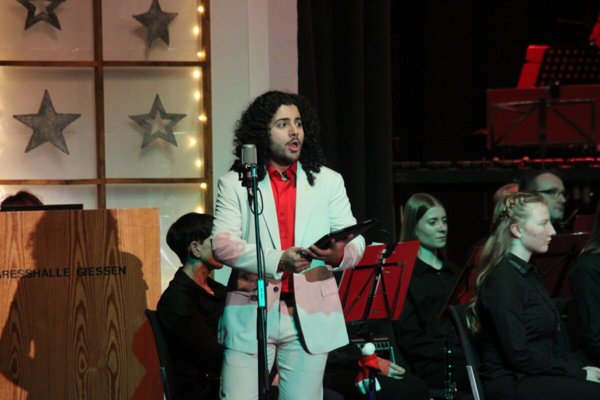 (Gießen) Rund 800 Besucher kamen zur Benefiz Weihnachtskonzert “Hilf deinem Nachbarn”. Die 58 Musiker unter der Leitung von Christopher Aßmann stimmten am 4 Advenntssonntag in die Kongresshalle Gießen. ihre Zuhörer gemeinsam mit Lidor Ram Mesika und der Männergesangverein “Alleweil aus Burkhatsfelden mit einem Konzert auf die Feiertage ein. Im ersten Teil des Konzert von Moderatorin Susanne Hohmeyer-Leblau, die charmant durch den Abend führte, stand unter dem Motto “Freue dich Welt”. Mit dem Krönungsmarsch “Crown Imperials” von William Walton ging es los, gefolgt von “The Witch and the Saint” von Steven Reineke aus deutsch (Die Hexe und die Heilige). Ebenfalls mit viel Beifall bedacht wurde der Gast aus Nitzanchor, Lidor Ram Mesika. Er sang im ersten teil mit Countertenorstimme “Bereite dich Zion”. Im zweiten Teil sang er mit seiner Baritonstimme “Vofre toast”. Zum Abschluß des offizellen Teils trug er noch ” Have yourself a merry little Christmas” bei. Im klassisch festlichen Teil wurde dann ein sprung zu John Williams Titel “Jurassic Park” vollzogen. Norwegeische Klänge stimmte der Männergesangverein mit “Nordnorsk julesalme” an. Mit “A Christmas Carol” leitete dann das Blasorchester Finale samt Zugaben ein. Zum Schluß wurde gemeinsam mit den Zuhörern “Stille Nacht” gesungen. Letzte Zugabe war der Marsch”Tochter Zion”