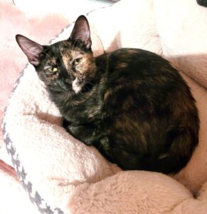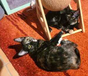 Die Schildpattmädchen Britney  und Moon haben sich zu verspielten, munteren und schmusigen Katzen entwickelt.